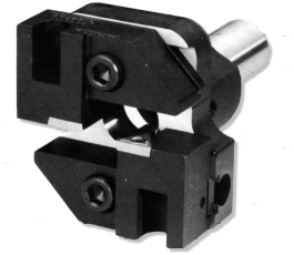 Balanced turning tools are used in the turrets of screw machines, turret lathes, and CNC lathes and are the best tools for rough turning. Balanced turning tools will remove a greater amount of material than any other turning tool available because of the rugged construction and two carbide cutting tools. Tools are always on center line, and the two-axis adjustment compensates for any misalignment between turret and workpiece. Adjustment is easily made by a fine adjusting screw to align the insert and correct misalignment between turret and workpiece. The disposable carbide inserts are indexable with three cutting edges per insert and can be easily replaced in minutes by simply loosening the insert screw and inserting a new carbide insert. The new insert is automatically returned to the center line position and requires little or no adjustment to return to the proper turning diameter.Approximately 80 percent of the material can be removed with one cutter, and the remaining material with the other cutter for finish turning. For rough turning, the cutter many be set so each insert removes only one-half of the required cut. This is especially productive when removing large amounts of material.Standard carbide inserts have 1/64" radius on corners. Carbide inserts with 1/32" radius are also available. The inserts may be set in different manners, depending on the nature of the work and material, and on the preference of the operator.